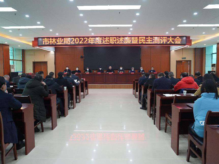 为进一步加强对市林业局内部的考核管理,提高工作执行力,全面客观总结评议2022年工作,1月10日上午,衡阳市林业局召开2022年度述职述廉暨民主测评大会,局党组书记、局长刘晓利同志主持会议并作总结讲话,局党组领导班子成员、局处级领导干部;机关全体党员干部职工,市林科所班子成员共70余人参加会议。