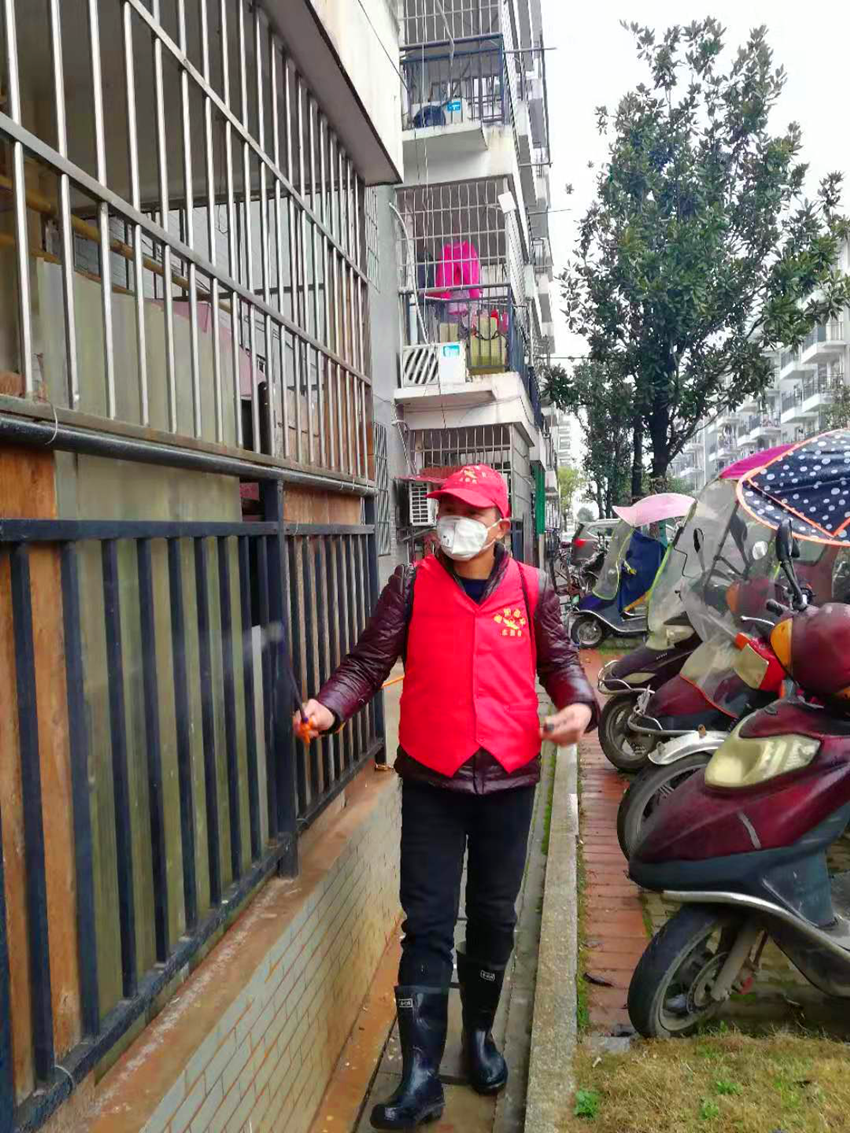 水库组组长钟孝勇自购喷雾器每天坚持为群众上户消毒