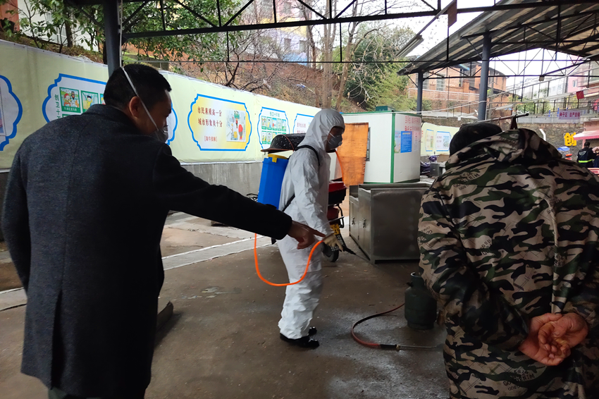 社区干部钟家龙负责菜市场消毒和管理