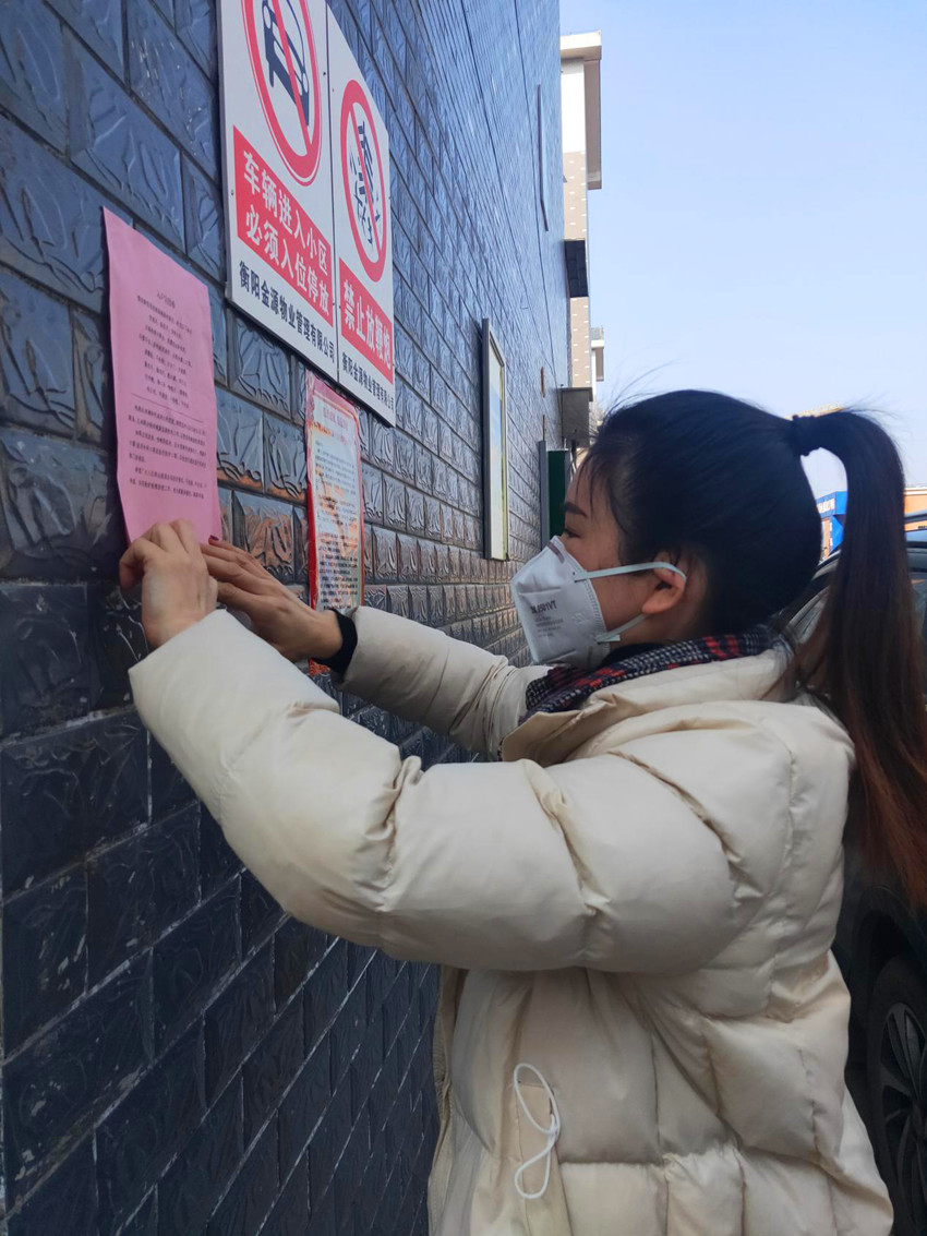 邹酒铺组妇女指导员伍金姿粘贴疫情防控宣传单