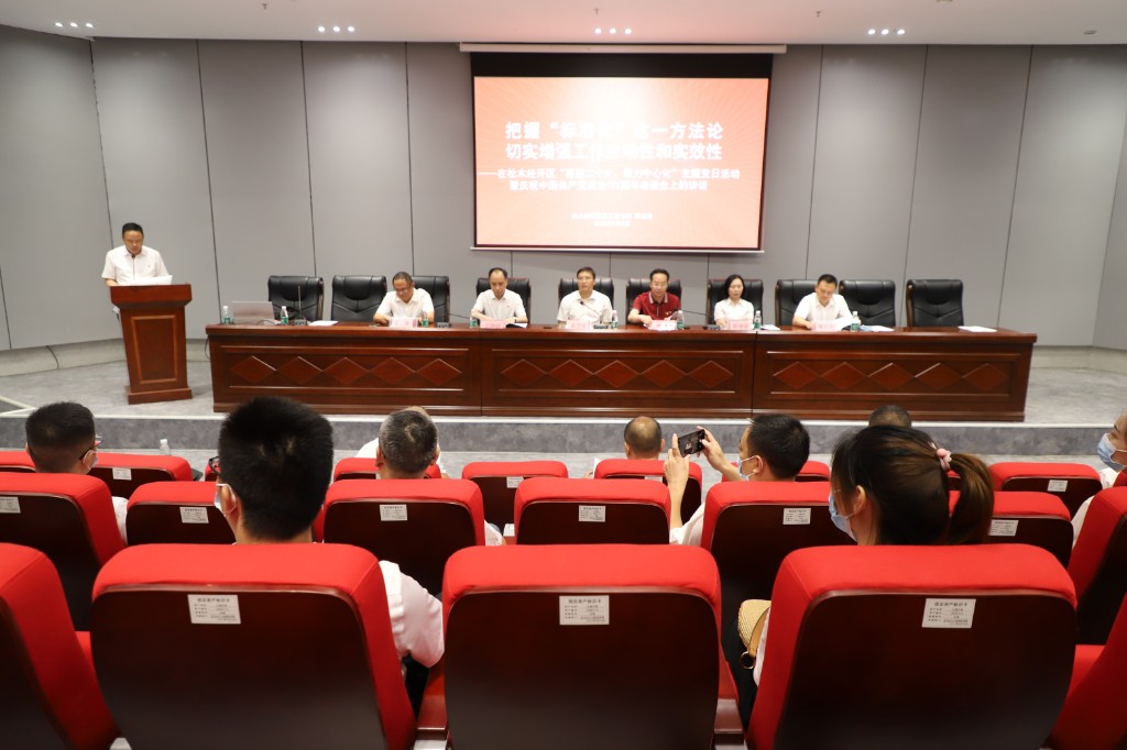 松木经开区管委会领导周建国、王晓园、廖德萍、魏谷生、王焱,松木经开区机关一支部、二支部全体党员,松木投公司、金源街道、入区企业、离退休党员代表参加本次党日活动。