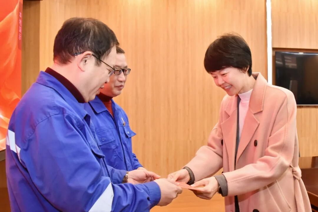 来到衡阳松木经济开发区,慰问组走进湖南蓝旗格气体有限公司劳模工匠创新工作室、松木经开区技术创新成果展厅,与劳模工匠、困难职工、一线职工亲切交流,将党和政府以及工会组织的关心关怀送到职工群众心坎上。“党中央、国务院及省委、省政府出台系列政策推动经济持续向好。工会作为职工的‘娘家’,将积极落实政策,全力帮助职工纾困解难。”慰问组叮嘱企业负责人要统筹好安全生产与职工关怀工作,确保大家度过一个平安祥和的春节。