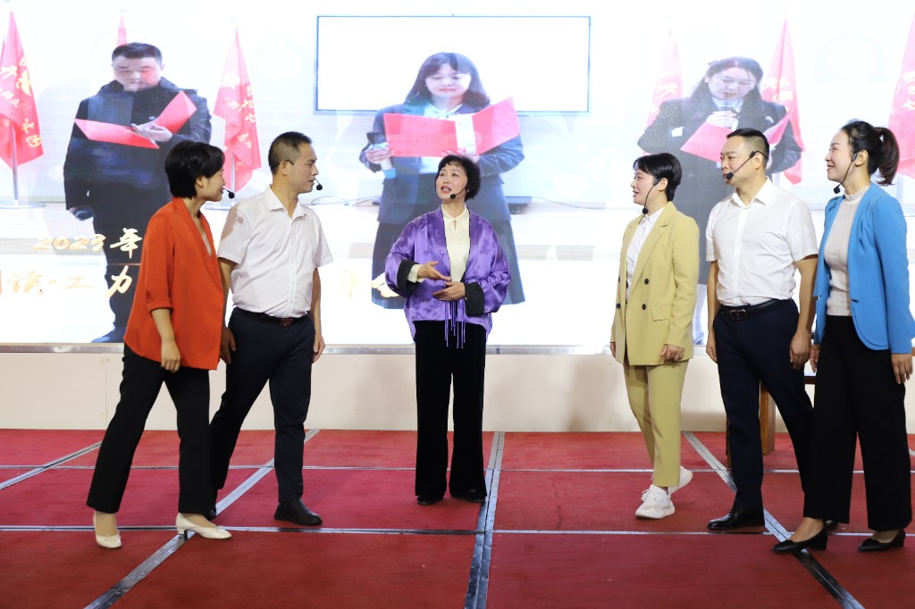 10月26日,2023年“玫瑰书香·湘阅芳华”衡阳市示范性女职工主题阅读活动举行,松木经开区读书会以一出精心编排的情景剧惊艳亮相成果展示环节并收获三个荣誉奖项。松木经开区一级调研员廖德萍带领读书会骨干成员马伟华、梁御书、韩丽、张爱民、龙殿本色出演。