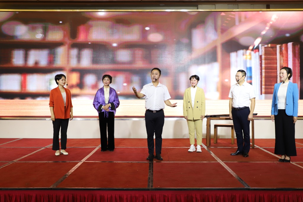 情景剧《书香常伴松木人》由袁茹梦编剧、朱瑾导演。在演绎中,松木经开区读书会的骨干成员们以报名参加主题阅读活动为背景,紧密结合日常开展的各类阅读活动,从每天推送的 “天天读”、主打精英领读的“10天共读一本书”、累计推送95本书的“每周推荐一本书”、设有“领导说、专家说、青年说”的“晚自习”和点燃大家阅读激情的“主题活动和年会”等五大版块出发,生动演绎了松木读书会是如何滋养松木人身心涵养、助力“五好”园区建设工作的。