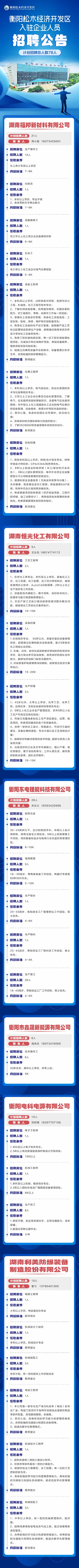 衡阳松木经济开发区入驻企业人员招聘公告