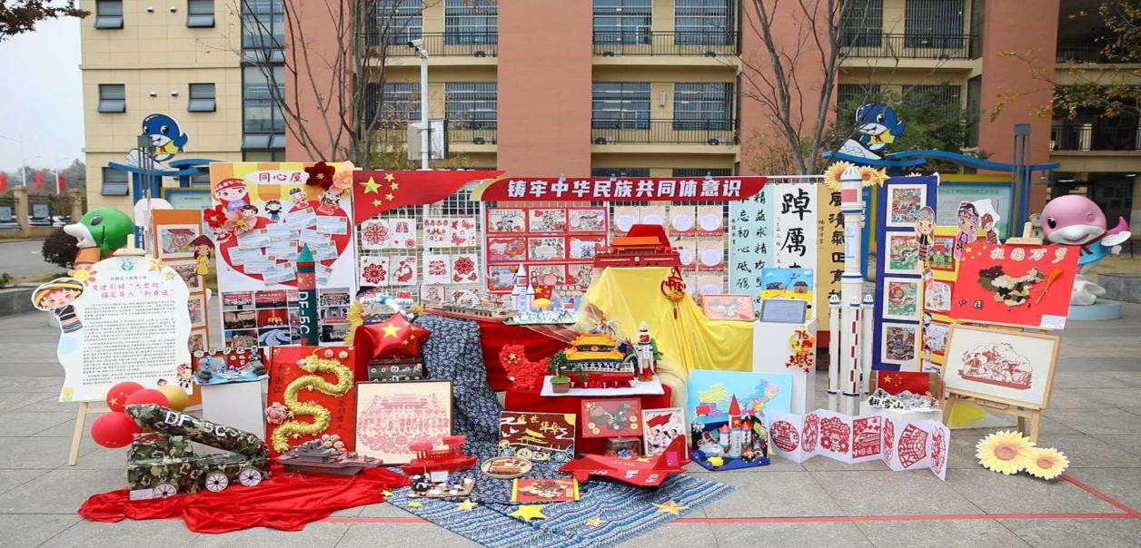 体现中华民族共享的文化符号、中华民族形象和国家元素的物件随处可见,巧妙布置为5个展区,吸引各族师生竞相打卡留念。伟大祖国篇的五谷杂粮中国地图、省级行政区拼图,直观展现各民族共同开拓了辽阔的疆域;中华民族篇的民族服饰泥塑、跨越3000公里的青少年学生结对书信,诠释“中华民族一家亲”的深厚情谊;中华文化篇的非遗剪纸、传统纹样折纸,彰显中华优秀传统文化魅力;中国共产党篇的红色故事绘本、革命先烈手抄报,凸显中国共产党历经百年沧桑依然风华正茂;中国特色社会主义篇的航天手工画、乡村振兴绘画,奏响建设航天强国、农业强国的时代华章。展区设置互动打卡点,让“五个认同”理念可感可触。