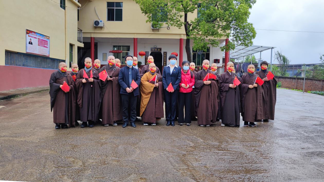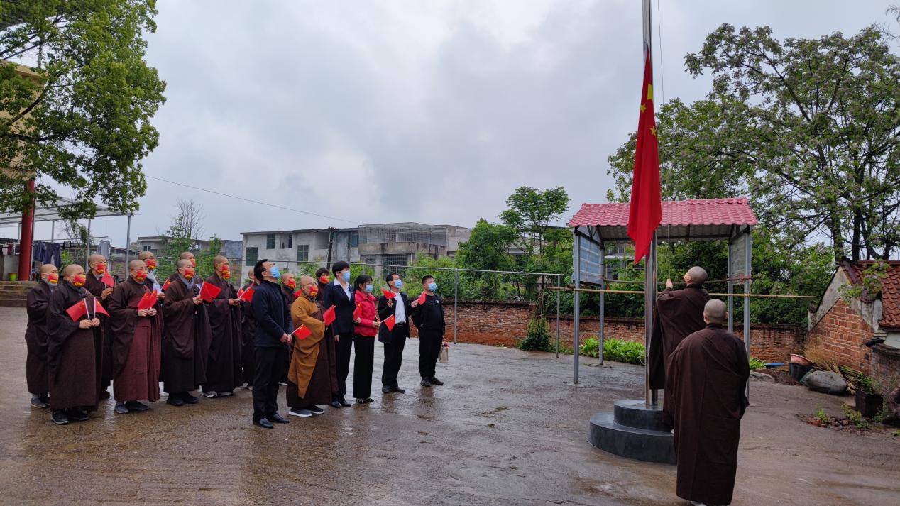 为深入开展宗教活动场所"五进五好"活动,引导宗教界人士和信教群众继承发扬爱国进步的优良传统。4月18日,常宁市委统战部、常宁市民宗局组织开展了"升国旗,唱红歌,赠党史"活动,常宁市委统战部常务副部长、民宗局局长刘晓梅、乡村两级主要负责人、宗教活动场所教职人员和部分信教群众参加。