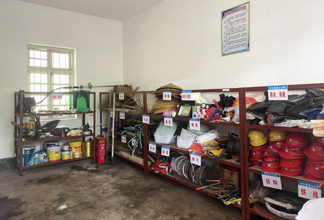 祁东县源山水库防汛物资储备仓摆放整齐有序