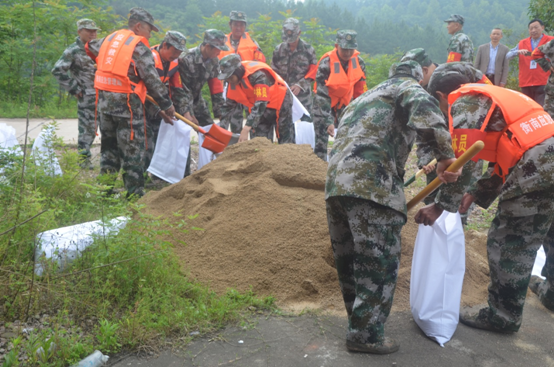 “灾情”发生后,镇、村两级救援力量迅速集结作战,根据现场地形地貌条件及实际情况,现场指挥长刘芳将抢险队队员就地分为三组,第一组为应急抢险组,负责急速装填沙袋并扛到水库大坝靠水管涌处进行堵漏;第二组为紧急疏散组,由村民组长手敲铜锣,急吹口哨,逐户敲门引领群众迅速向预定安全地点转移,确保时机不耽一分,疏散不漏一人;第三组为医疗保障组,由镇卫生院医护人员对在“灾情”中受伤的人员进行紧急救治,并提供防汛应急物资。