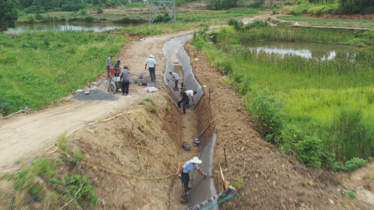 在洪市镇新泉村,十来个工人正趁着晴好天气,对该村的两条主干渠进行防渗衬砌改造。两条渠道总共长3公里,承担着沿途600多亩的农业灌溉任务,但由于渠系老化、年久失修,破损严重,已无法发挥灌溉效应。今年全县启动小型农田水利设施建设"中梗阻"项目三年实施方案,新泉村通过争取上级项目资金63万元,对两条渠道进行全面修复改造,打通农业灌溉"最后一公里"。