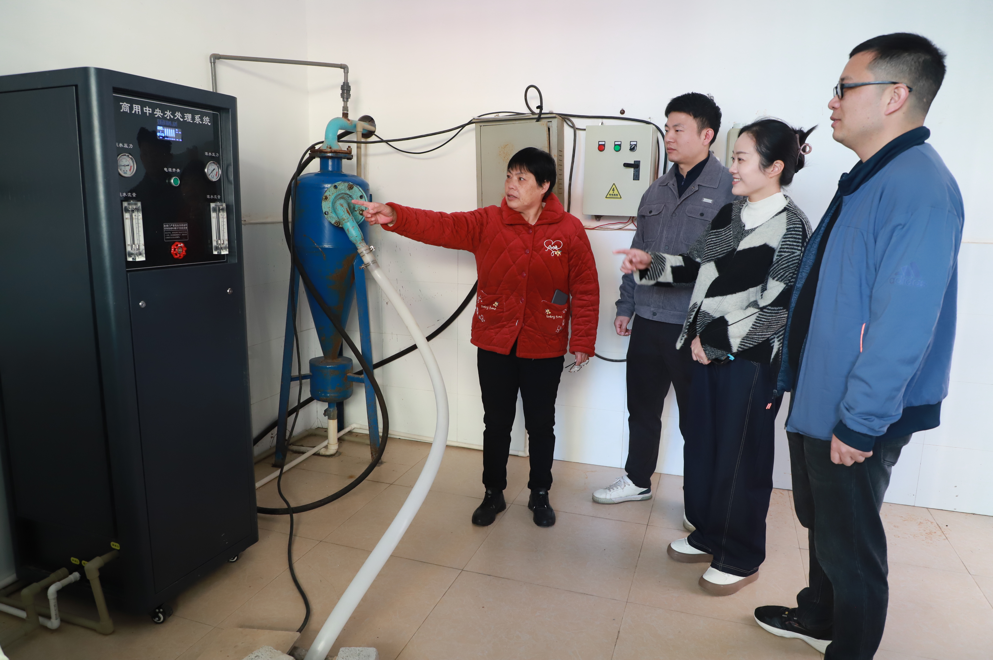 得知这一情况后,石鼓区水利局迅速响应,将寺门前组饮水问题纳入农村饮水保障突出问题整治清单,投入2.4万元专项资金用于更换新型净化设备,进一步提升水质净化效果;组织专业人员对蓄水池进行彻底清洗消毒,清除池内沉积物和绿苔,从源头减少污染物进入;同时,在供水点专门设置了集中饮用水取水点,方便村民随时取用。