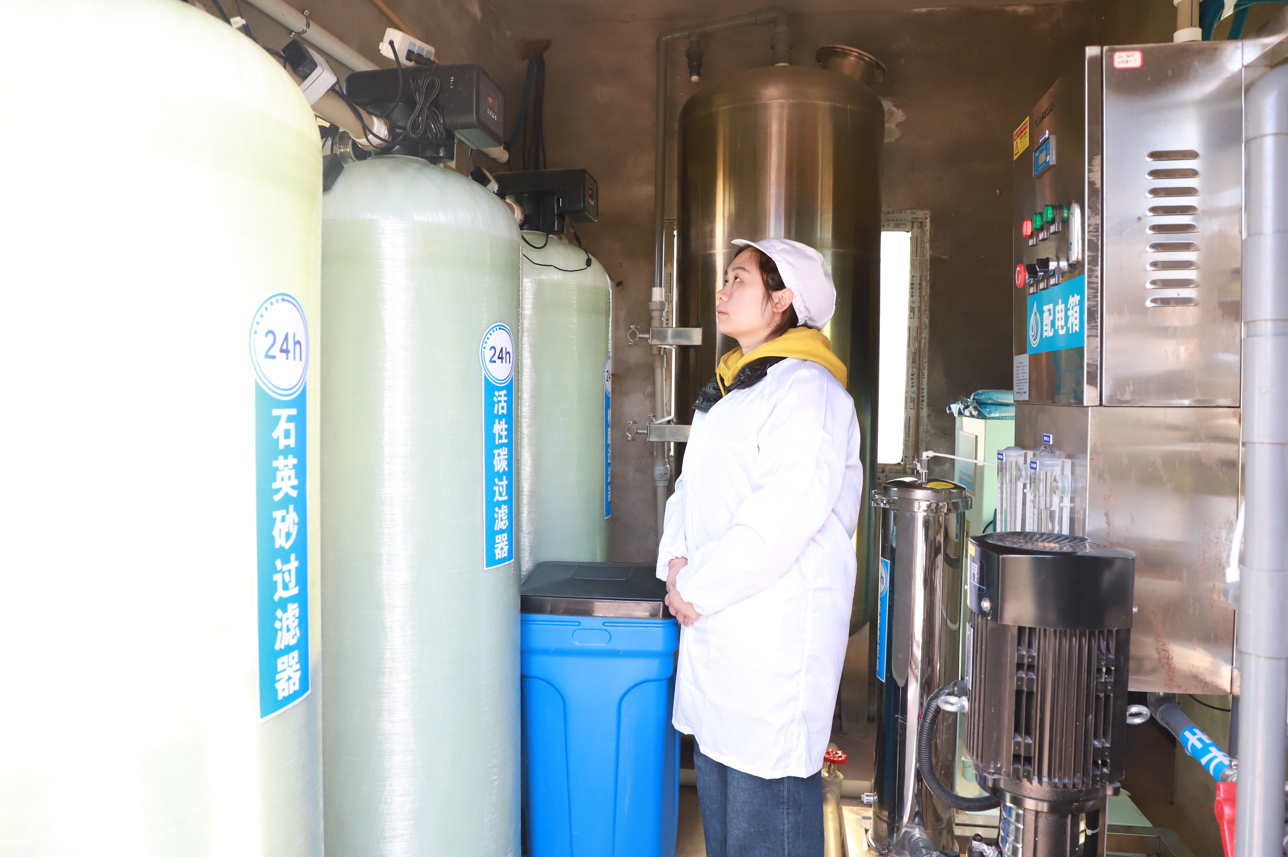 11月27日9:30,石鼓区金源街道三里社区集中供水点的管护员李丹已准时出现在设备房内。她熟练地检查着净化机组的运行参数,用抹布擦拭着仪表盘上的微尘,又拿起扫帚清扫设备周边的卫生,一系列操作有条不紊。