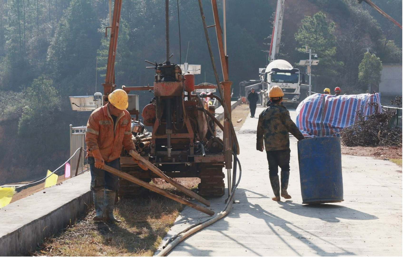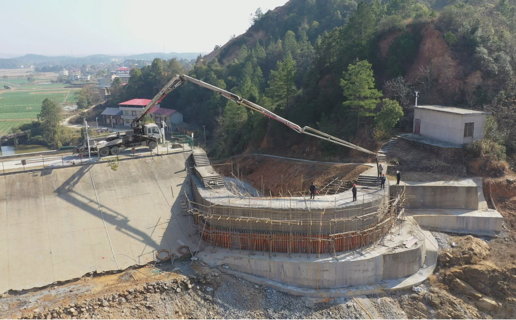 在财源冲水库和八亩亭水库除险加固工程现场,溢洪道混凝土浇筑作业正在紧张进行,施工人员也在同步进行着帷幕灌浆等作业。目前这两个小二型水库已完成约70%工程量,待本轮除险加固实施完成后,将显著提升水库安全运行能力和水资源调控水平。