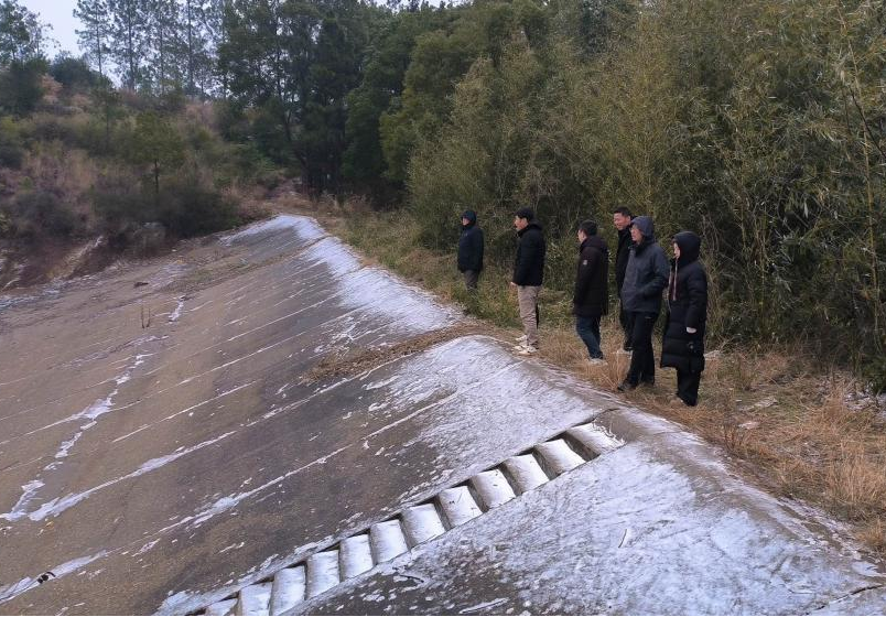 秋风渐远,寒意渐浓,季节悄然步入深冬,山塘整治也迎来最关键的施工阶段。衡山已是寒风凛冽,霜雪覆满山野,冷风像刀子一样刮在脸上。坝埂上结着薄冰,路面湿滑难行,人一开口,呼出的气息瞬间化作白雾,南方的湿冷穿透力极强,即便裹着厚棉袄,手脚还是被冻得麻木只能蜷缩在口袋里争取片刻的温暖,但天寒地冻、道路崎岖都挡不住一个“倔犟”的人,阳煜宇依然坚持深入一线、亲临现场,逐塘指导、靠前指挥,紧盯施工安全、工程质量与实施进度,用坚守确保山塘整治平稳有序、落地见效。