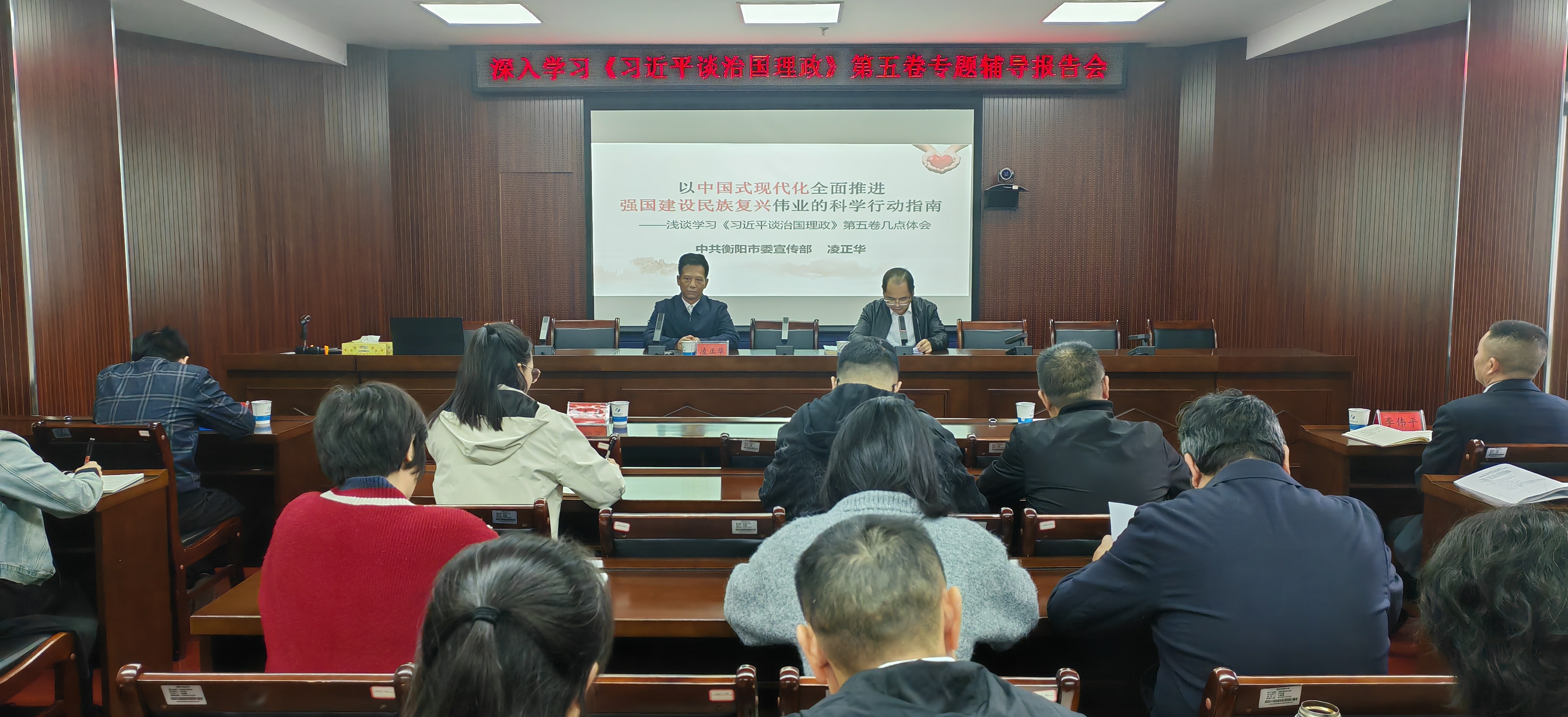 紧扣主题,分层推进夯实学习基础 学习期间,中心组成员严格落实学习方案,于10月20日全天开展个人自学,系统研读《习近平谈治国理政》第五卷原文,结合《人民日报》《中国社会科学报》系列评论文章及国家统计局、衡阳市委理论学习中心组最新学习动态,深化对习近平新时代中国特色社会主义思想的理解。10月21日上午,邀请市委宣传部理论科科长凌正华作专题辅导,深入解读第五卷的时代意义与核心要义。下午,局领导分章节领学重点内容,中心组成员结合分管工作展开理论研讨。
