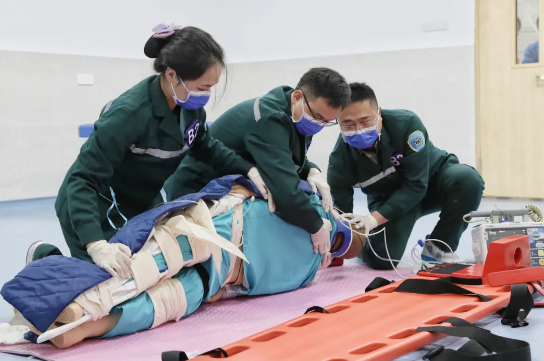 竞赛包括理论考试和技能操作两个环节,技能竞赛紧扣“创伤”主题,包括创伤评估、致命性大出血控制、气道开放与维持等伤情处理。选手们在规定时间内完成理论考试和赛道式团队技能操作,充分考验其理论水平、实操能力及团队协作默契度。