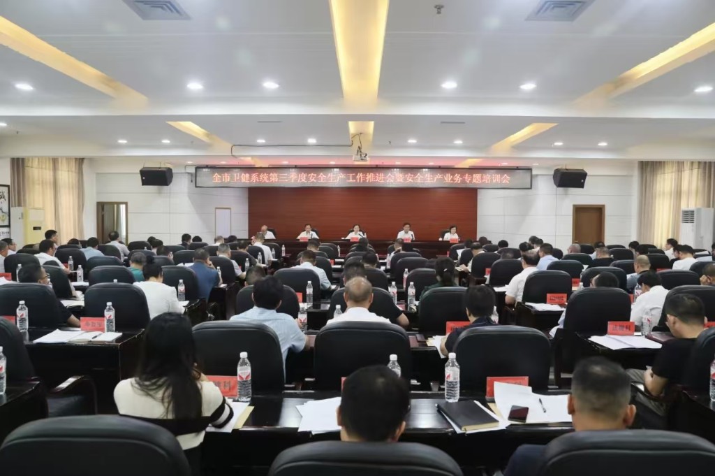 7月26日,衡阳市卫健委组织召开全市卫健系统第三季度安全生产工作推进会暨安全生产业务专题培训会,深入学习习近平总书记关于安全生产重要论述精神,贯彻党中央国务院、省委省政府和市委市政府决策部署,全面落实国家、省、市安委会工作要求,分析安全生产形势,安排安全生产重点工作,开展安全生产业务专题培训。市卫健委党组书记、主任刘英出席会议并讲话。