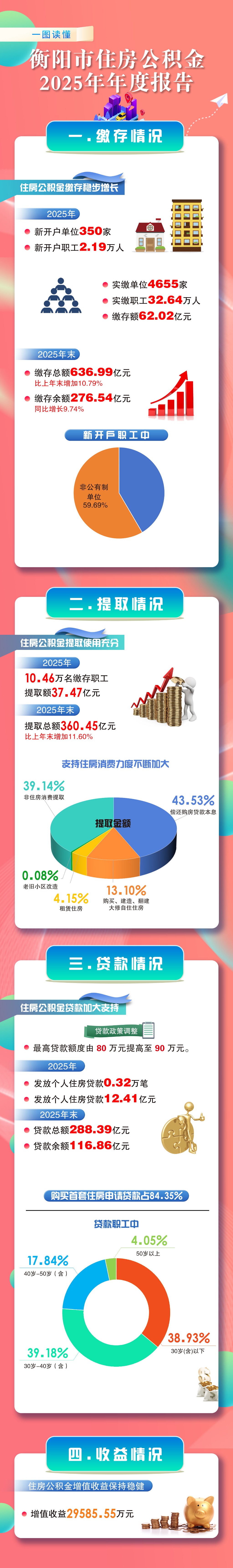 3月30日,《衡阳市住房公积金2025年年度报告》正式对外发布,报告全面披露了2025年衡阳住房公积金各项业务运行和管理工作情况,根据最新发布的运行数据,全市住房公积金核心业务指标实现稳步增长,政策红利持续释放,为支持职工住房消费、保障群众住有所居提供了有力支撑。现就重点内容解读如下: