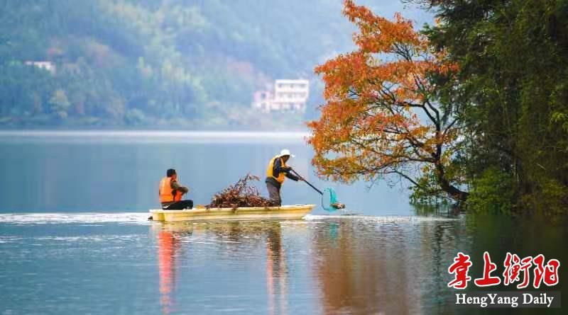 ▲受近期连续降雨影响,常宁市境内河流水库枯枝、树叶等漂浮物增多,当地及时开展清漂工作,确保水面清洁、水质优良。周秀鱼春摄