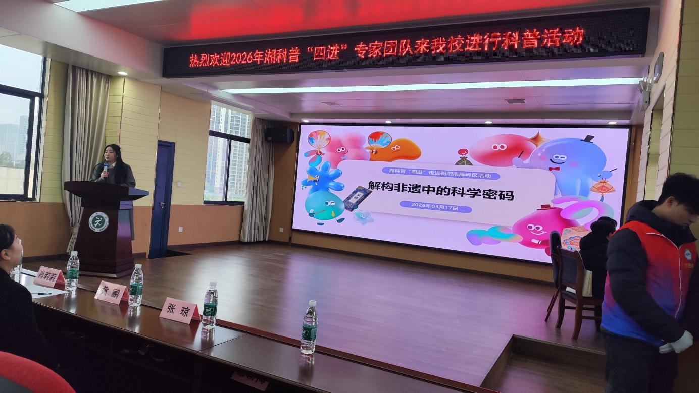 3月17日,湘科普"四进"活动走进衡阳市雁峰区小学,湖南高速铁路学院科创教育专家和科普专家,通过专题讲座、实验展演等形式,为孩子们送上了一场集知识、趣味与实践于一体的科普盛宴,点燃青少年崇尚科学、探索未知的热情。