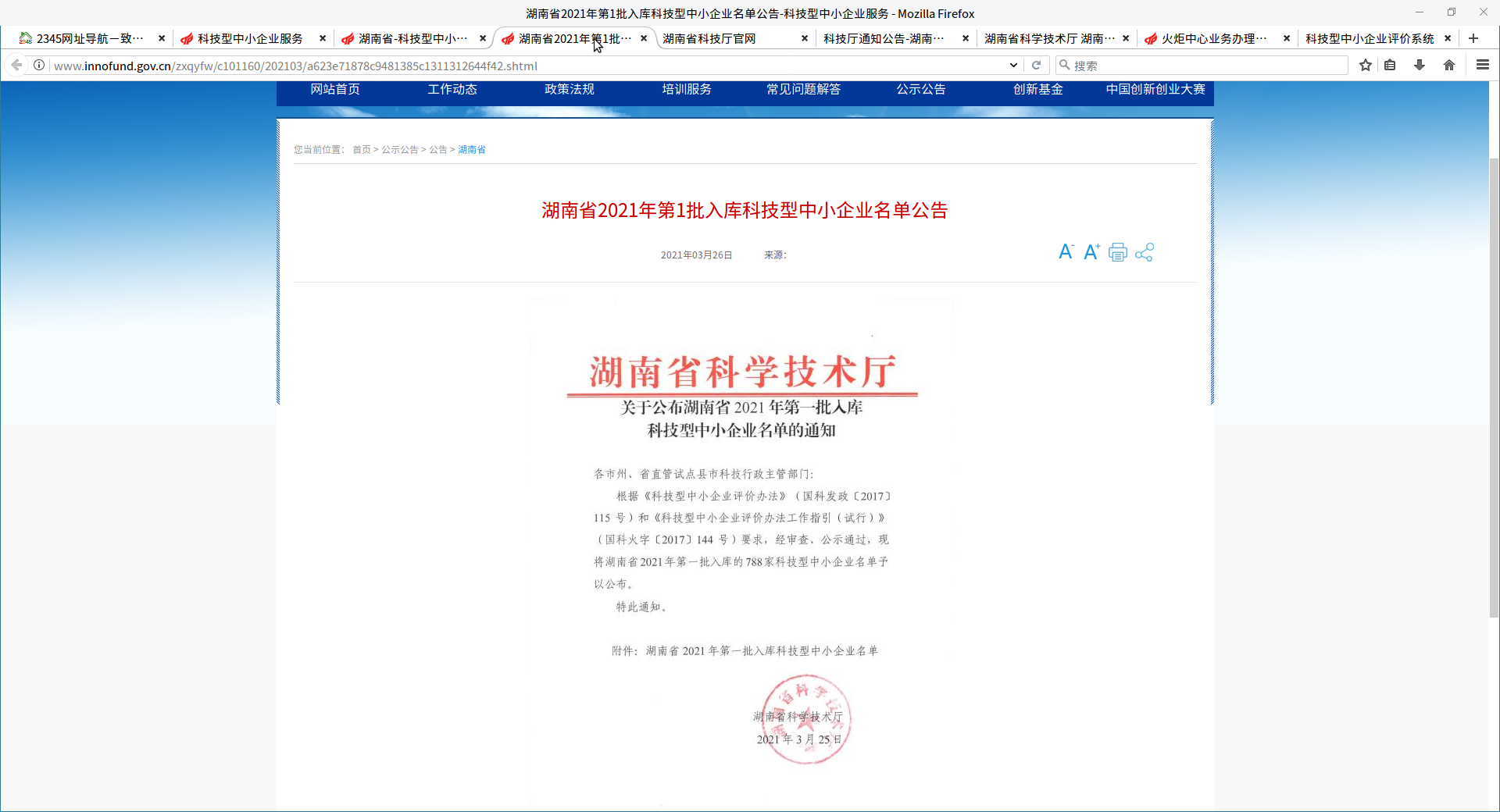 关于公布湖南省2021年第一批入库科技型中小企业名单的通知