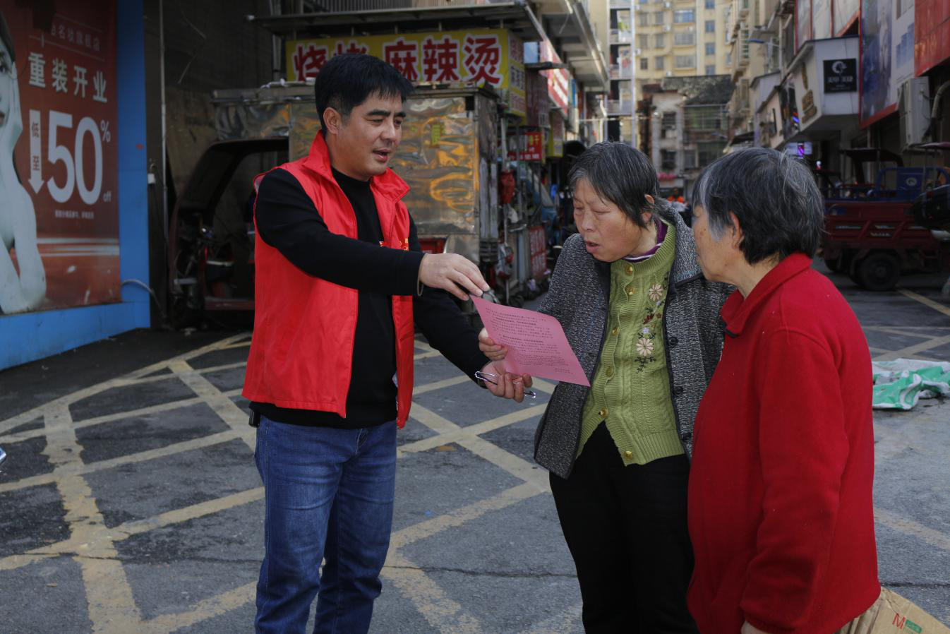 随后,党员志愿者们前往菜市场等人流密集区域,开展文明祭扫宣传志愿服务,耐心宣讲焚烧纸钱、燃放鞭炮的安全隐患,积极倡导鲜花祭扫、网络祭扫等绿色文明方式,引导群众摒弃陈规陋习、守护生态家园。
