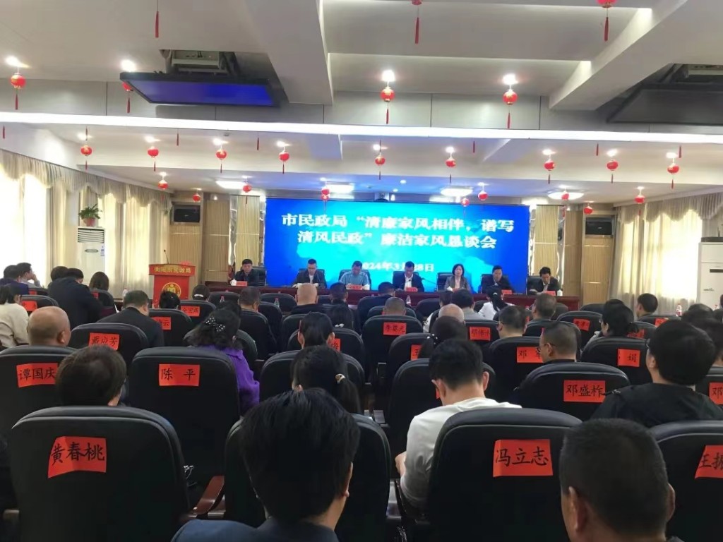 3月28日,市民政局召开“清廉家风相伴 谱写清风民政”廉洁家风恳谈会,局党组副书记、副局长唐昌平主持会议,局党组书记彭顺利,市纪委监委驻市民政局纪检监察组组长王建业出席会议并讲话,市政协副主席、民政局局长陶朝晖及其他局领导班子成员,局机关正、副科长,局属单位班子成员及家属90余人参会。
