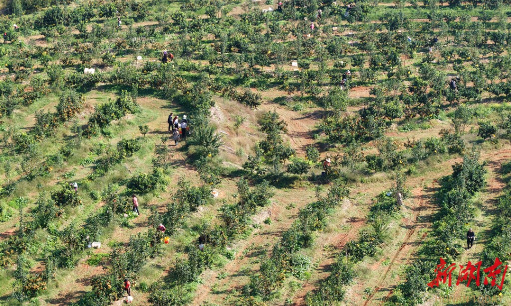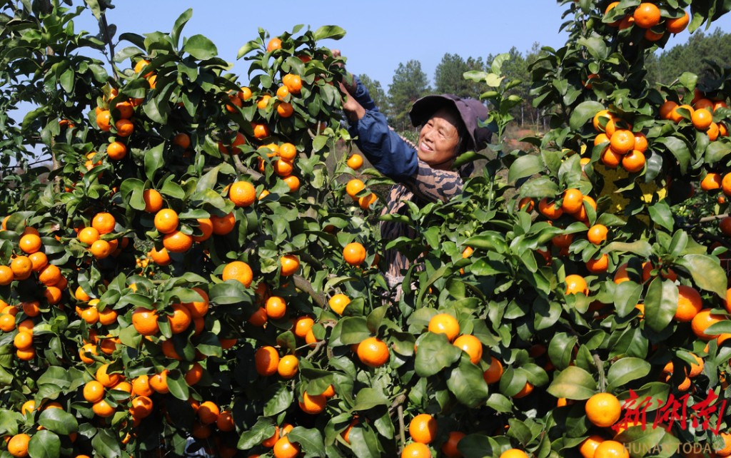 11月15日,衡南县花桥镇源氏农林柑橘种植基地,村民在采摘砂糖橘。立冬过后,该种植基地种植的砂糖橘、脐橙、葡萄柚陆续进入成熟采摘期,村民抢抓晴好天气开展采摘。近年来,衡南县积极调整农业产业结构,根据市场的需求,大力发展各类特色优质水果,带动群众增收。