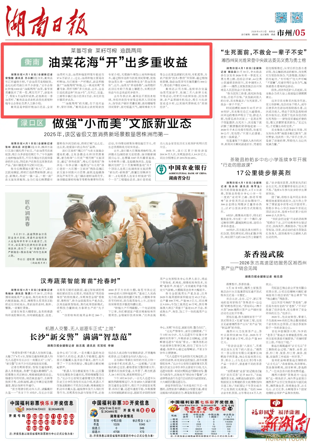 连日来,衡南县车江街道铁市村,千亩油菜花竞相绽放,金灿灿的花海引来不少游客。“去年合作社种植1100亩‘油蔬两用’油菜,春节前菜薹就采了第一茬,现在花开了,游客来了,等到5月油菜籽成熟,还能再收一季油菜籽。”衡南县金武农机农技优质稻种植专业合作社负责人王静介绍。 衡南县是中国好粮油示范县、全省油菜籽大县,油菜种植面积常年稳定在57.6万亩以上。过去,油菜种植主要是收籽榨油。为打破单一产籽模式,该县积极推广“油蔬两用”种植,让一块地实现“菜薹可食、菜籽可榨”多元效益。去年,全县引进优质品种“庆油3号”,在车江、宝盖、三塘等乡镇打造示范田2万亩,并在其他乡镇同步试点。 “‘油蔬两用’的关键,在于选对品种、管好田块。”衡南县农业农村局农技专家介绍,无需额外增加土地和种植成本,通过科学选种与优化田间管理,就能使油菜从单一油料作物变身“菜油双供体”。此外,油菜为“养地作物”,油菜秸秆还田后有助于改善土壤肥力,实现经济效益与生态效益同步提升。 去年冬季以来,衡南县开展技术培训,并组织农技专家常态化深入田间地头,指导农户做好菜薹收割、清沟理墒等田间管护。面对低温天气,湖南神农大丰等企业还紧急调配抗冻剂、有机肥等,为农户提供“技术+物资”双保障。通过精细化管理,每亩油菜田可采摘菜薹约300公斤,带动农户增收1200元。 衡南还以花为媒,连续举办宝盖油菜花旅游节、泉湖二月八农耕文化节等活动,将赏花与农耕体验、民俗展演、农产品展销有机结合,吸引大批游客走进乡村,让美丽风景转化为“美丽经济”。