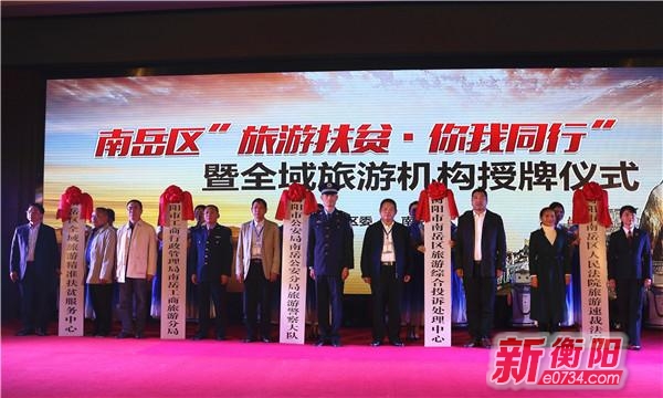 旅游扶贫·你我同行。在全国第四个扶贫日到来暨党的十九大即将召开之际,10月16日,南岳举行"旅游扶贫·你我同行"暨全域旅游机构授牌仪式,现场为南岳区全域旅游和旅游扶贫服务机构授牌,与花垣县边城镇、祁东县凤歧坪乡签订旅游扶贫合作协议,并就机器人、房车、空中游览等旅游服务项目达成战略合作框架协议,展现出南岳全面推进旅游综合管理体制改革的务实之举,也标志着南岳旅游扶贫进入了县乡联动、供需对接的新阶段。湖南省旅游发展委员会党组书记、主任陈献春出席仪式并作讲话,衡阳市副市长周玉梅出席仪式。 陈献春指出,近年来,湖南省围绕破解"两个跟不上"的问题,从旅游客源地需求的角度重新审视旅游目的地建设,坚持"两手抓"推动全域旅游发展,一手抓旅游新投资新供给,把全域旅游示范县与全省旅游扶贫示范县创建工作结合起来,以文创引领乡村旅游创新发展,实施"景区带村"重点项目推进旅游脱贫攻坚,有针对性地组织推出了一批适合不同消费需求的旅游新景区新业态新产品,不断丰富旅游市场,解决有效供给不足的结构性矛盾,推动了全省旅游客源结构、产品结构和消费结构的不断优化调整。 ▲湖南省旅游发展委员会党组书记、主任陈献春发表讲话 南岳"全域旅游"发展驶入快车道 在热烈的开场歌舞《天下南岳等你来》中,南岳"旅游扶贫·你我同行"暨全域旅游机构授牌仪式拉开序幕。此次"旅游扶贫·你我同行"暨全域旅游机构授牌仪式上,南岳对正式施行"1+4"旅游综合管理新机制进行现场授牌,南岳区旅游局更名为旅游发展委员会,成立旅游警察大队、工商旅游分局、旅游综合投诉处理中心、旅游速裁法庭4个专门服务旅游的特殊机构,释放新一轮旅游动力和活力,为推进全域旅游发展添砖加瓦。 今年来,南岳区以创建国家全域旅游示范区为目标,加快推进体制机制改革、突破产品开发、优化旅游环境、改善基础设施,全面推进城乡风貌景观化、项目建设精品化、产业发展融合化、配套设施人性化、服务体系标准化、全域管理一体化,全域旅游发展驶入快车道。南岳区先后建立健全"1+5"规划体系、"1+4"旅游综合管理工作机制,不断健全项目建设和优化环境的奖惩激励机制,重点项目加快推进;策划举办了"山盟之旅""我在寿岳有棵树""祭茶大典"、"星空节"等活动,丰富了精品旅游线路,推出了"第三卫生间"等景区服务提质工程……一系列的举措,让南岳成为越来越多游客喜爱的"旅游目的地"。据统计,今年1-9月南岳完成地区生产总值24.46亿元,同比增长8.7%;实现一般公共预算收入5.22亿元,同比增长2.27%;完成固定资产投资23.52亿元,同比增长18.5%,;实现社会消费品零售总额19.14亿元,同比增长11.6%。1-9月,全区接待游客867.06万人次,实现旅游收入63.75亿元,同比分别增长12.05%、13.60%。今年6月,南岳区被国家旅游局批准为第二批国家级旅游业改革创新先行区,这也是南岳继入选国家级全域旅游示范区创建单位后获得的又一国家级"牌照"。 值得一提的是,在此次"旅游扶贫·你我同行"暨全域旅游机构授牌仪式上,机器人现场表演着舞蹈《菩萨面前许个愿》,这群萌萌哒的"小演员"一出场就吸引到在场观众的目光,这些机器人今后将会南岳游客服务中心为广大游客服务。活动现场,南岳区旅游发展委员会与湖南衡岳旅游网络信息有限公司签订旅游营销合作协议,与长沙锐迅电子有限公司签订机器人、房车项目合作协议,与湖南昆鹏航空服务有限公司签订南岳衡山空中游览项目战略合作框架协议。根据协议,南岳将建设"房车综合营地",开通低空飞行等游览项目,同时投放打令小宝机器人、智能屏并设立VR智能手机租售服务,实现人工智能导游,使南岳成为科技融入自然领驱者。这些旅游业新业态快速发展,将在为游客提供新鲜旅游体验的同时,也为南岳旅游市场注入了新动力。 "旅游扶贫"的南岳样本 "我们向全区各机关、企事业单位、社会团体及社会各界人士真诚倡议……借乘南岳全域旅游创建东风,发挥旅游产业综合带动效应,深入推进旅游精准扶贫工作,让贫困群体依托旅游市场,共享发展成效,实现稳定增收,让他们早日脱贫致富,过上幸福美好生活。"在此次"旅游扶贫·你我同行"暨全域旅游机构授牌仪式上,南岳全域旅游精准扶贫服务中心正式授牌,同时有来自20个不同行业代表共同诵读"旅游扶贫·你我同行"倡议书,并与国家级贫困县湘西花垣县和省级贫困乡祁东县凤歧坪乡签订旅游农副土特产品销售合作协议,此外,"中国社会扶贫网"南岳子网也将于活动当天上线。 打"生态牌",搭"乡村台",唱"山水戏",念"致富经"。水濂洞月光下的村落、红星村骑行主题村落、十里茶乡茶文化体验区……三大南岳全域旅游示范景点,以线路的延伸打造全域旅游的广阔图景,也形成了旅游精准扶贫的带动之轴。大力实施的"全域旅游富民"战略,将全域旅游与精准扶贫深度融合,全区1809名建档立卡贫困户全部脱贫、两个省级贫困村退出,贫困发生率降至2%以下,原省级贫困村寿岳乡龙池村按照"公司+基地+农户"的产业化发展模式,依托茶叶产业扶贫,让广大村民"一叶致富";全域旅游精准扶贫服务站在水濂村、龙池村、红星村涌现,电商扶贫的新形式,使"旅游+扶贫"形成时代特色。在贫困村引入电商平台,设立电商网络服务点,拓宽了本地土特产、农产品销售渠道; "乐游南岳"APP推出
