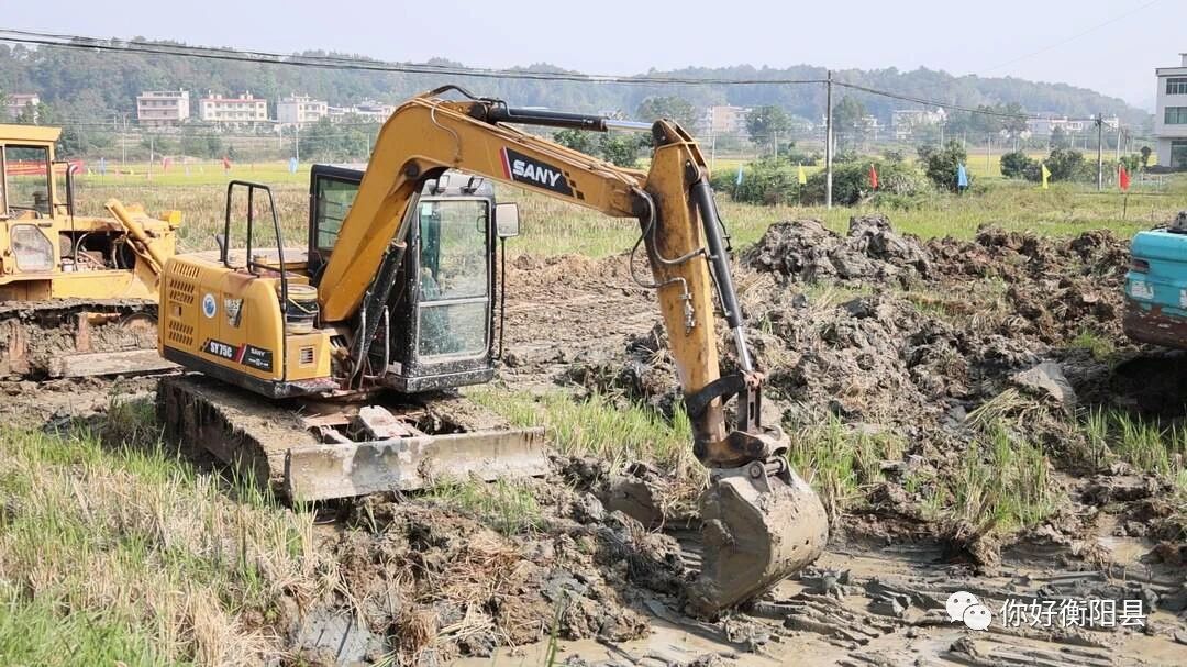 2023年衡阳县总 投资8599万元 建设高标准农田建设项目 涉及井头、关市、洪市等 10个乡镇43个村 实施面积5.21万亩 其中新建2.88万亩 提质改造2.33万亩 近日我县2023年度高标准农田建设项目 开工仪式 在井头镇响水堰村举行 标志着全县 2023年度高标准农田建设任务 正式进入实施阶段 在井头镇响水堰村高标准农田建设项目施工现场,机器轰鸣,三台挖掘机、一台推土机正在田间来回穿梭,平整土地、清运积土、开挖沟渠,将一块块零散的“小田”整合成“大田”、“农田”变为“良田”。 近年来,我县全力以赴推进高标准农田建设,持续夯实农业发展“耕”基,全面筑牢粮食安全“压舱石”。截至目前,我县已完成高标准农田70余万亩。建设内容为田块整治、灌溉与排水、田间道路等,将进一步推进农业现代化,助力农民增收、农业增效。 衡阳县2023年高标准农田建设项目总工程师黄书炳:“项目当前已全面动工,预计年底 全面竣工,项目建成后,预计年新增主要农产品生产能力,粮食630万公斤,油料65万公斤,项目区直接受益农民,年收入增加总额为1392万元。”