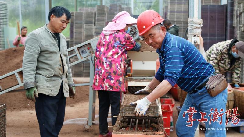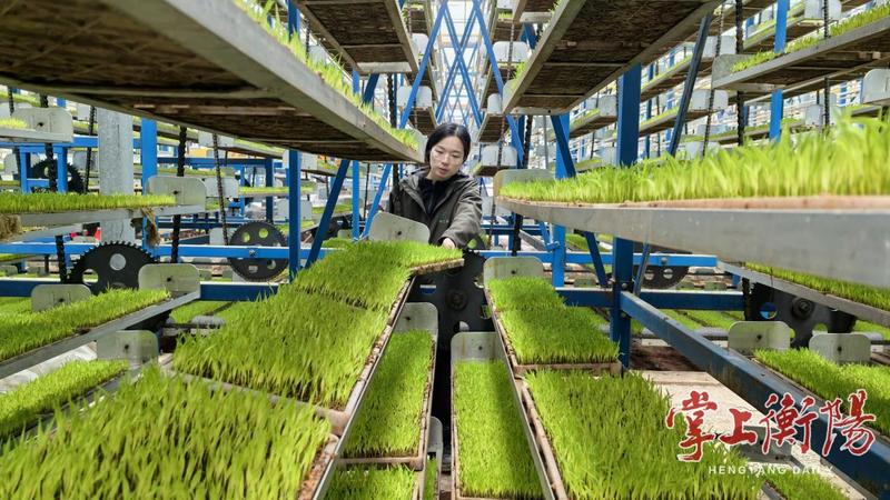 “秧好一半禾,苗好七分收”,健壮的秧苗是水稻高产的基础。眼下正是早稻育秧的关键期,衡山县种粮大户将水稻育秧从田间搬进了工厂,开启了科技赋能的“智能育秧”新模式。 ▲自动育秧流水线马力全开。廖晶 摄 白果镇棠兴村国丰智能化育秧基地,全自动早稻育秧流水线正“火力全开”。同时,该基地利用智能化工厂育秧技术,让育秧不但实现了流水化生产,秧苗也坐上了“电梯”,住上了“楼房”。循环运动式育苗床与全自动早稻育秧流水线协同作业,不仅省时省力,还显著提高了育秧质量,为春耕生产注入了强大动力。 走进育秧基地,机器轰鸣不绝。一条自动育秧流水线马力全开,工人们娴熟地操作设备。经过装填基质土、喷淋浇水、精细播种、均匀覆土等数道工序后,一个个育秧盘被集中转运到密室进行催芽。三到四天之后,这些秧盘就能移入循环运动式育秧苗床。 ▲循环运动式育苗床上摆满了一盘盘嫩绿的秧苗。廖晶 摄 “育秧最怕的就是极端天气。‘倒春寒’时期昼夜温差较大,烂种、烂秧的情况时有发生。工厂化育秧与田间的小拱棚育秧相比优势明显,一方面可以缩短育秧周期,另一方面,循环运动式育秧苗床配备的喷淋系统,能够及时为秧苗补充所需的水分和养分,让秧苗的生长更为均匀和茁壮。”衡山国丰农机合作社负责人陈紫玲告诉记者。 ▲基地工作人员正在查看秧苗长势情况。廖晶 摄 据悉,该基地在满足自身800亩早稻育秧需求的同时,还为周边农户提供代育秧服务,目前已播种早稻秧苗超过40000盘,预计清明后即可全面启动插秧作业,确保不误农时、稳产丰产。 今年,衡山县早稻种植面积17.63万亩以上。目前,全县的早稻集中育秧、田地翻耕等工作正在有序开展,预计4月上旬将陆续开展早稻移栽大田工作。