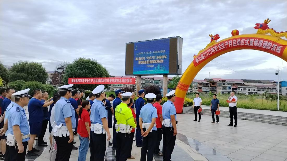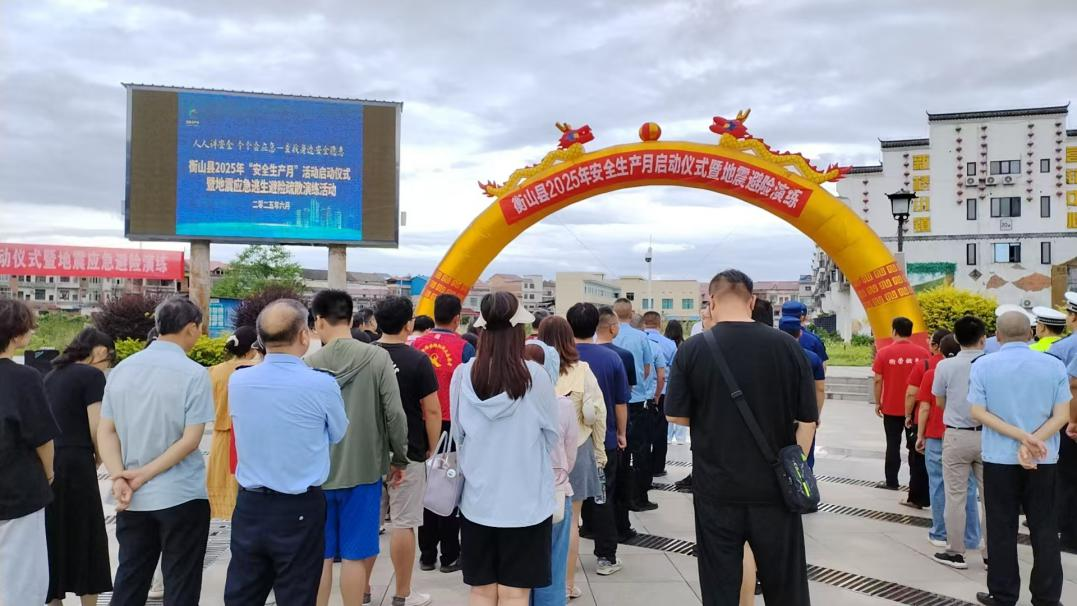 上午9点30分,衡山县应安办主任、应急管理局局长胡向军宣布2025年衡山县“安全生产月”宣传咨询日暨地震应急逃生避险演练活动正式开始。