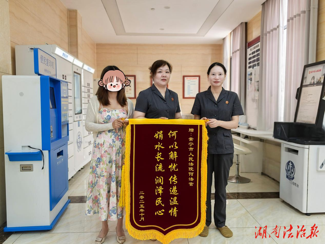 湖南法治报讯(通讯员 李奕)近日,常宁市人民法院诉讼服务中心迎来暖心一幕:一位案件担保人的女儿刘某专程赶来,将一面锦旗送到法官手中,感谢法官通过耐心细致的调解,成功化解了一起困扰她家庭许久的20万元借款纠纷,让压在全家心头的重担终于落地。