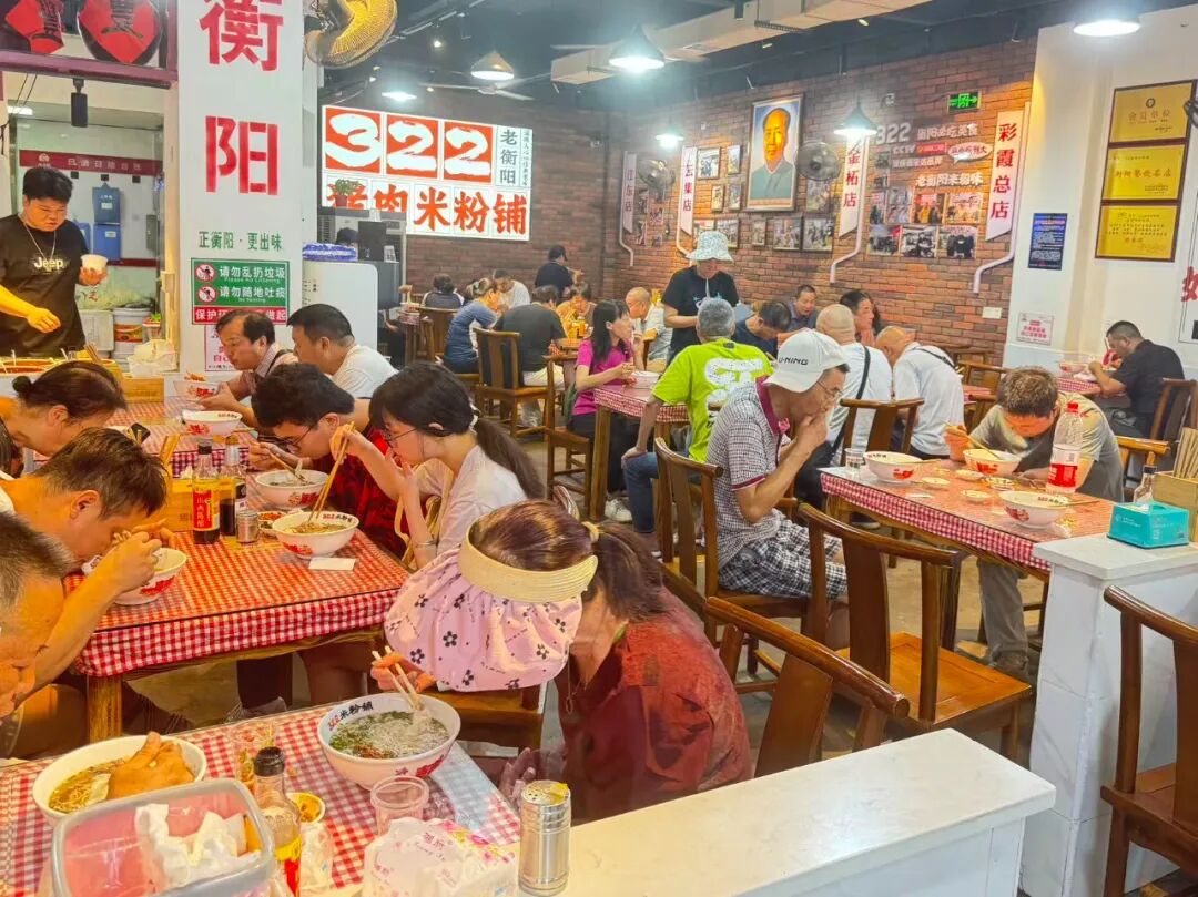 9月14日,不少球迷仍拿着门票直奔周边商圈。在蒸湘区一家322粉店前,队伍从店门口排到人行道上,店内桌子坐得满满当当,服务员端着热气腾腾的米粉穿梭在过道里。
