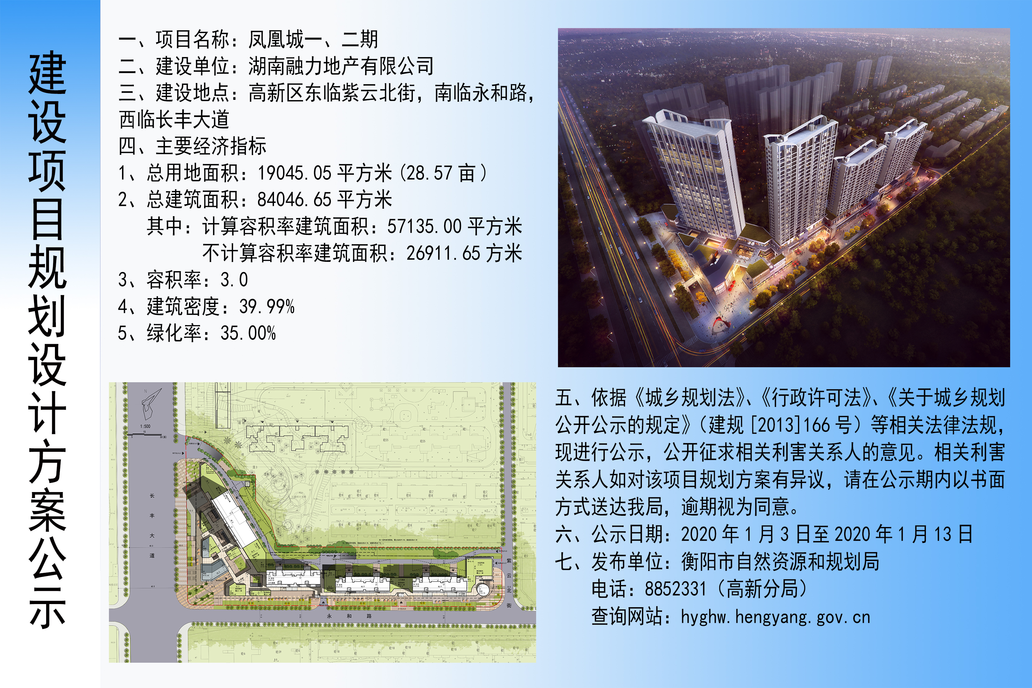 湖南融力地产有限公司凤凰城一、二期建设项目规划设计方案公示