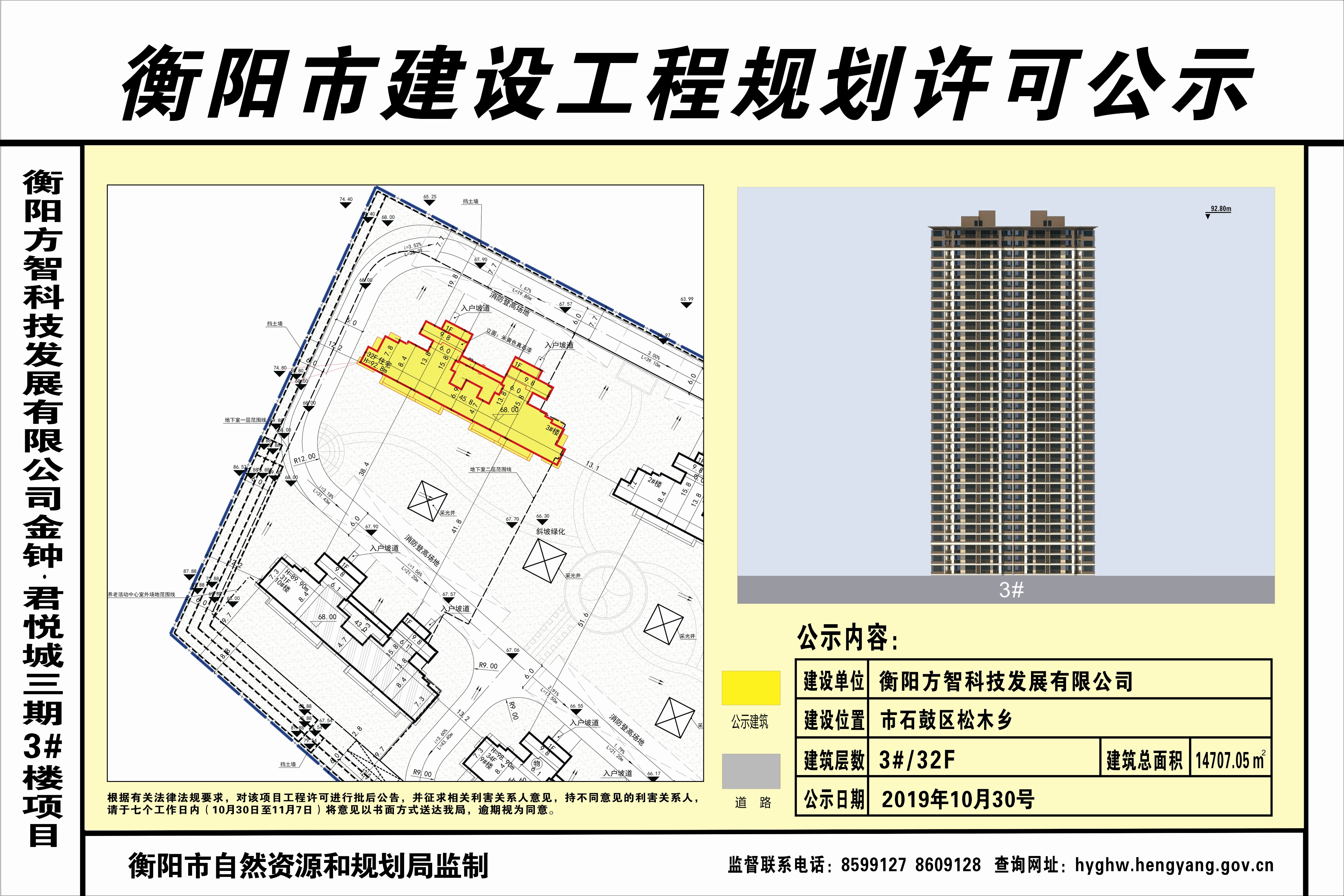 衡阳方智科技发展有限公司金钟•君悦城三期3#楼项目工程规划许可公示