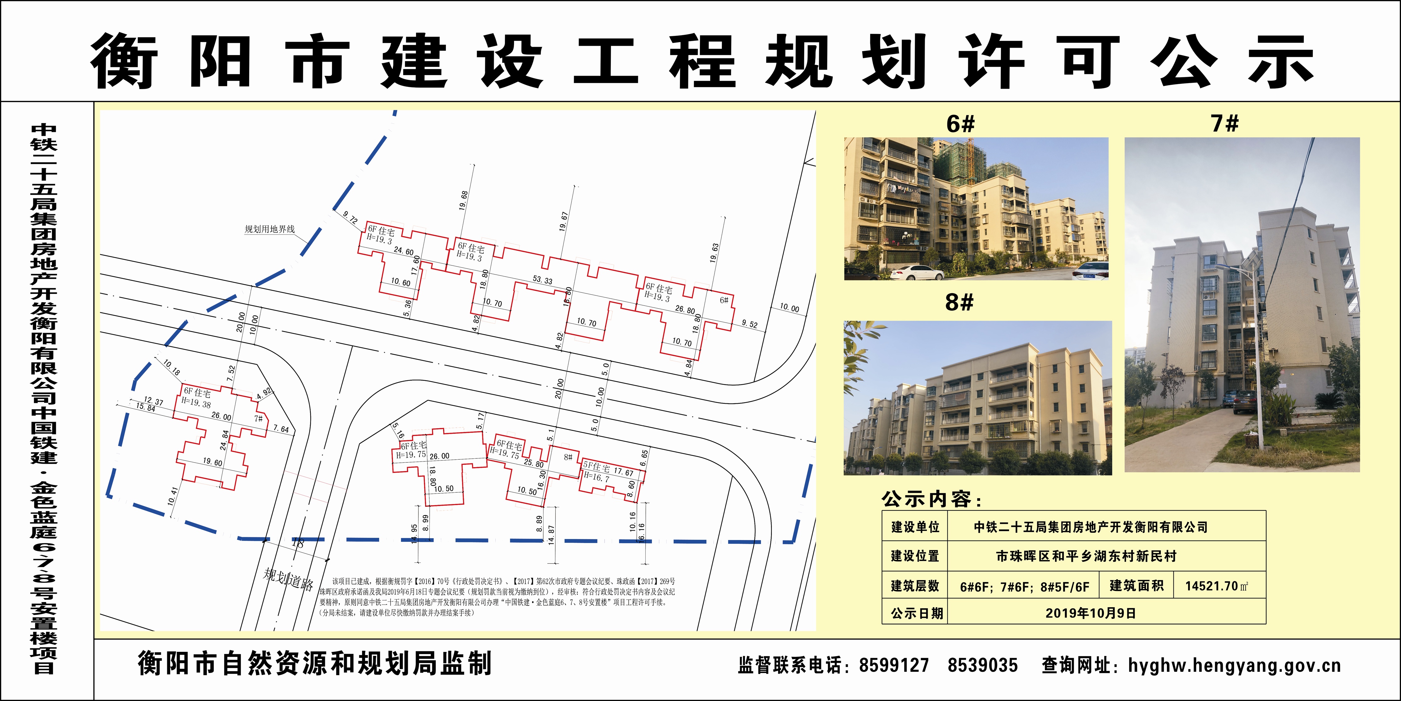 中铁二十五局集团房地产开发衡阳有限公司中国铁建•金色蓝庭6、7、8号安置楼项目工程规划许可公示