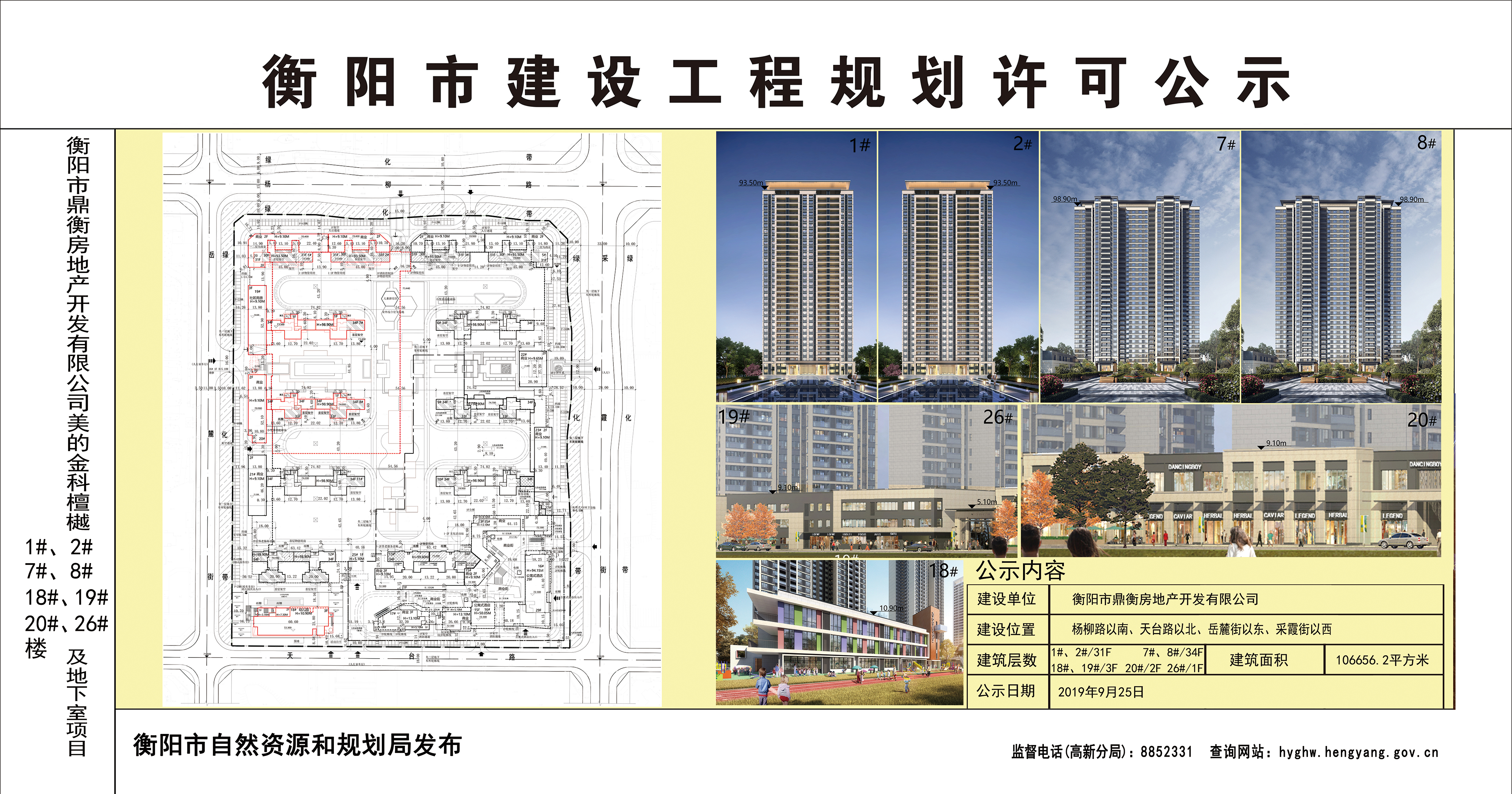 衡阳市鼎衡房地产开发有限公司美的金科檀越1#、2#、7#、8#、18#、19#、20#、26#楼及地下室项目工程规划许可公示