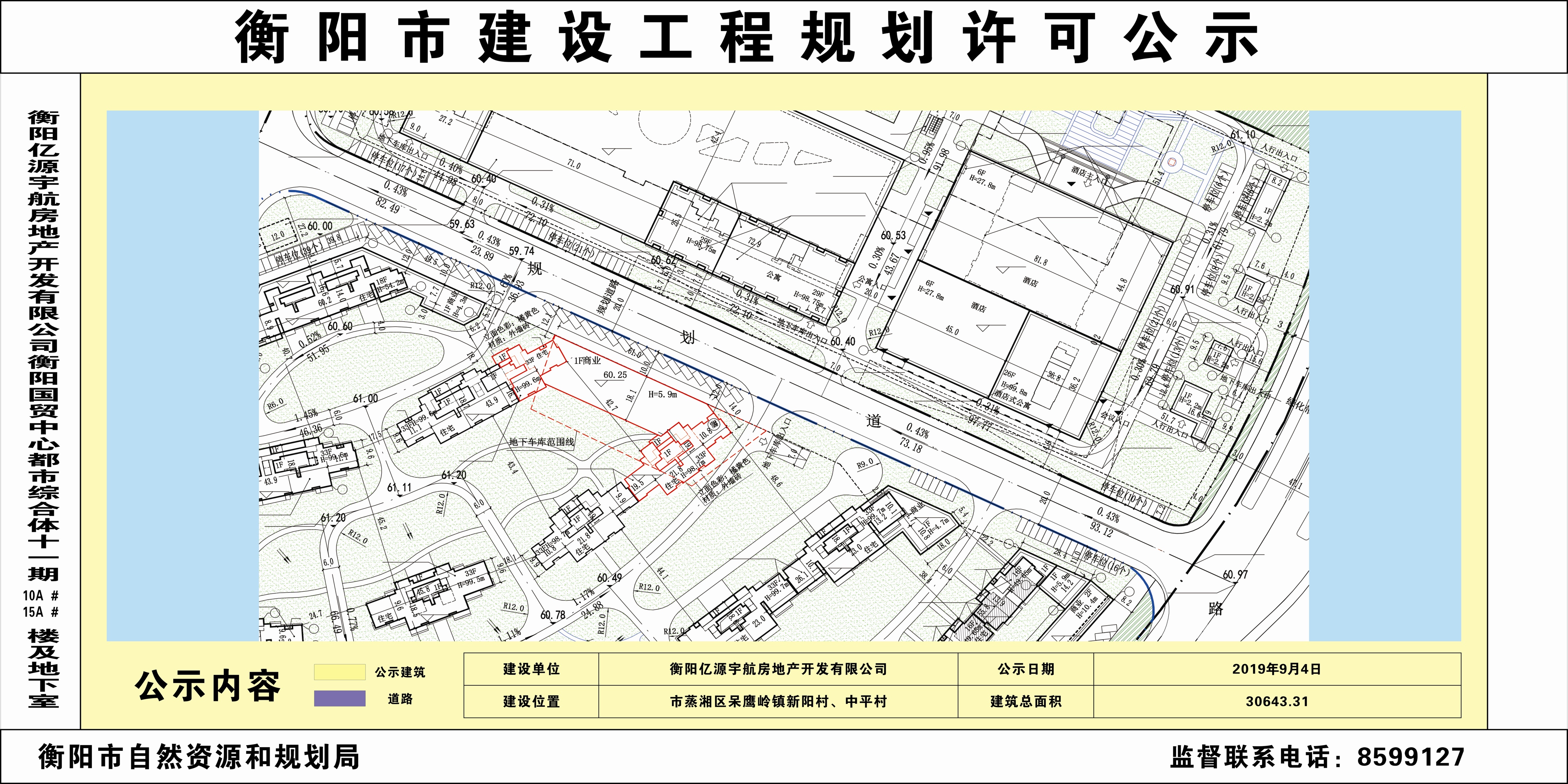 衡阳亿源宇航房地产开发有限公司衡阳国贸中心都市综合体十一期10A#、15A#楼及地下室工程规划许可公示
