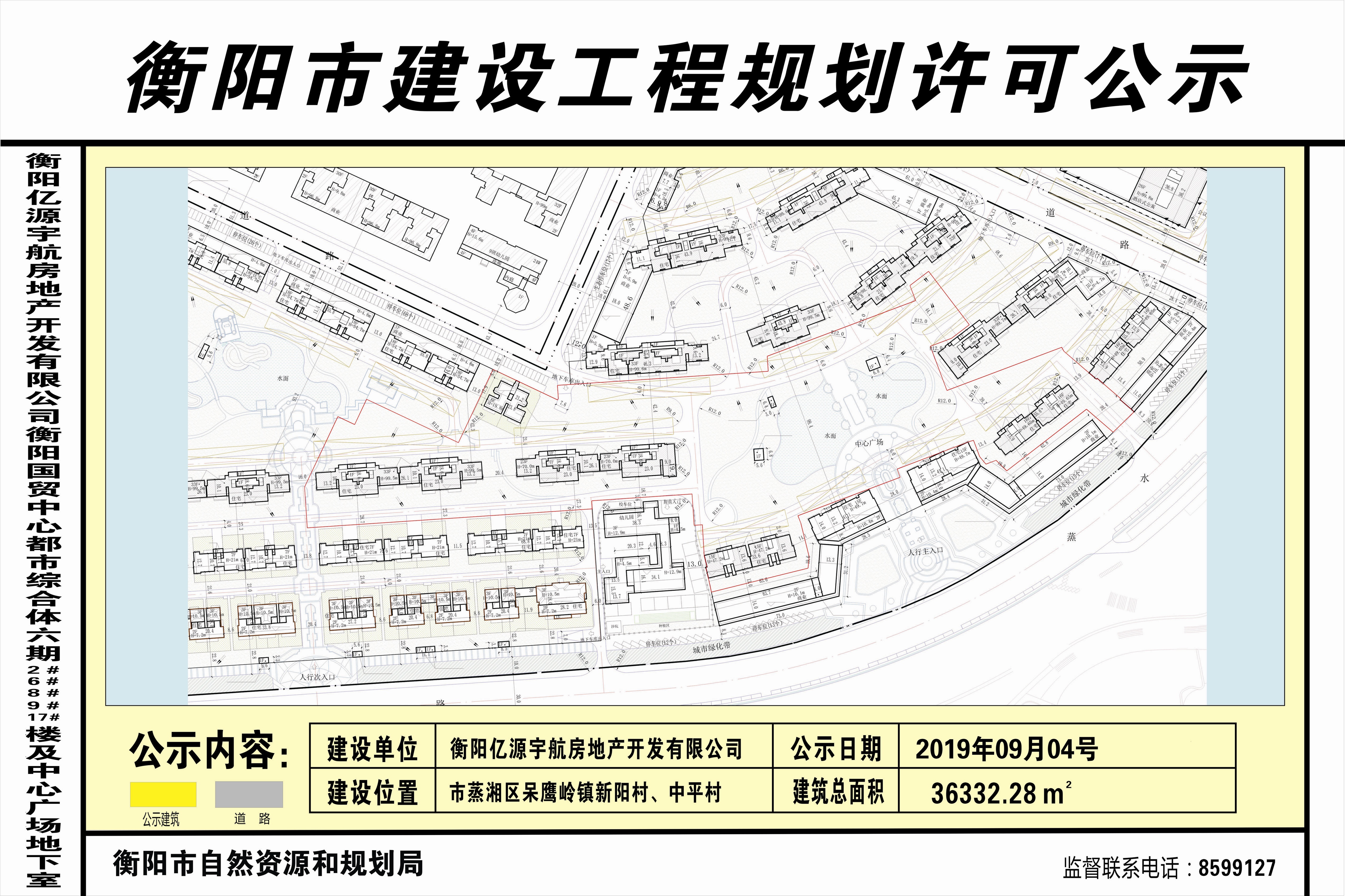 衡阳亿源宇航房地产开发有限公司衡阳国贸中心都市综合体六期2#、6#、8#、9#、17#楼及中心广场地下室工程规划许可公示