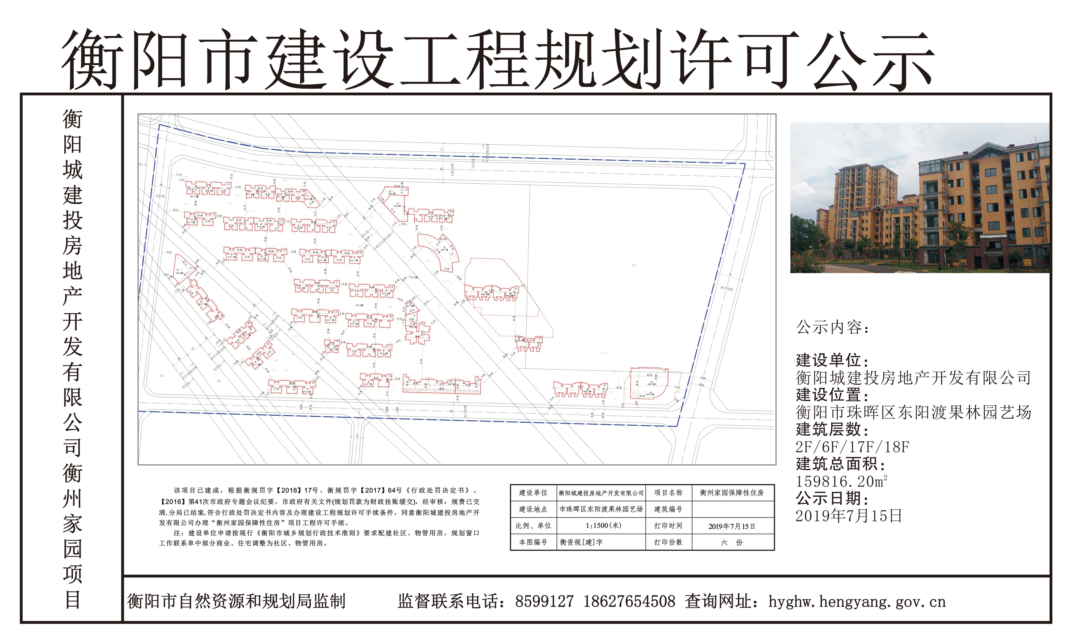 衡阳城建投房地产开发有限公司衡州家园项目工程规划许可公示