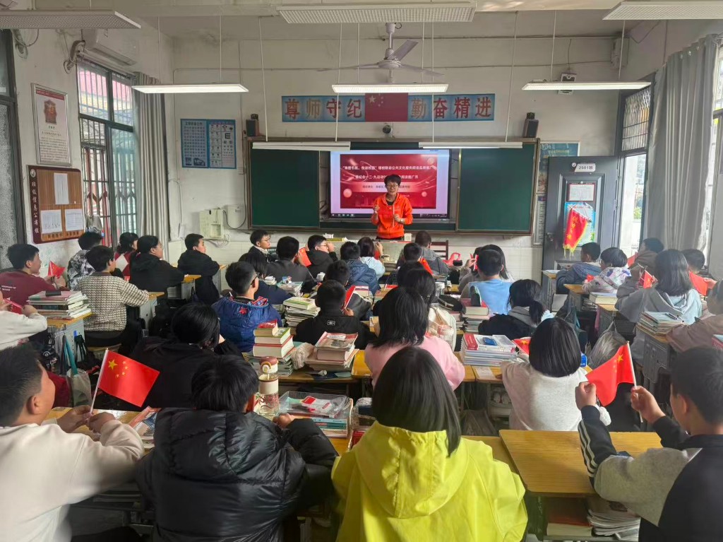 活动在庄严的氛围中拉开帷幕。谭老师以饱满的激情,为同学们生动讲述了“一二·九”运动的历史背景、发展历程及其深远意义。一段段感人的红色故事,将师生们的思绪带回到那个民族危亡、热血沸腾的年代,深刻展现了青年学子在国家存亡关头挺身而出的爱国情怀与历史担当。紧接着,现场播放的“一二·九”运动专题宣传片,以珍贵的影像资料和详实的叙述,进一步勾勒出波澜壮阔的历史画卷,让跨越时空的青春呐喊与爱国精神直抵人心。