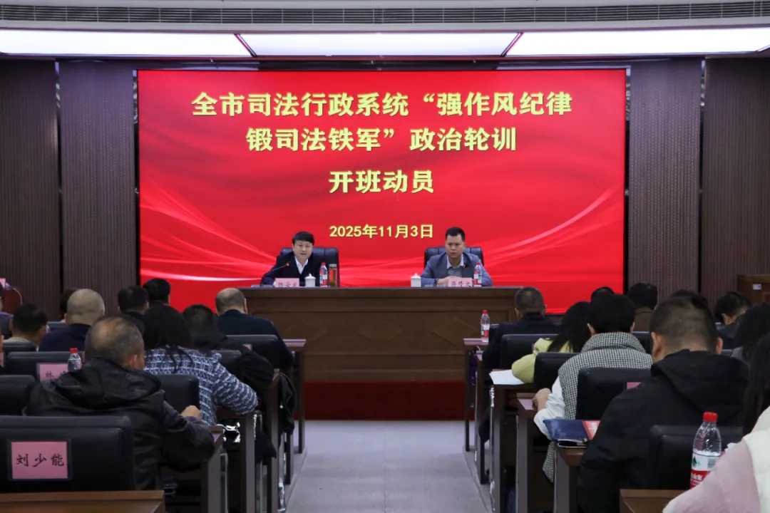 为深入学习习近平法治思想和《中国共产党政法工作条例》,进一步提升全市司法行政系统干部的政治素质和履职能力,努力锻造一支忠诚干净担当司法行政铁军。2025年11月3日至5日,市司法局在市委党校举办“强作风纪律·锻司法铁军”政治轮训班。市局机关、各县(市)区司法局和局直属单位近100名干部参训。