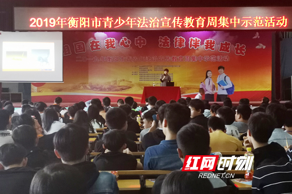 法治广播剧演出、法治知识讲座、法治微电影……当天,一系列法治宣传活动在衡阳技师学院开展,该校志愿者现场为师生们送上普法知识读本和宣传册。当前,“不忘初心、牢记使命”主题教育在各领域深入开展,加强法治教育是加强和改进青少年思想道德建设,全面提高青少年法治意识的重要一环,此次活动结合主题教育,以青少年学生喜闻乐见的形式将法律送进校园,引导青少年遵法、守法、懂法、用法。