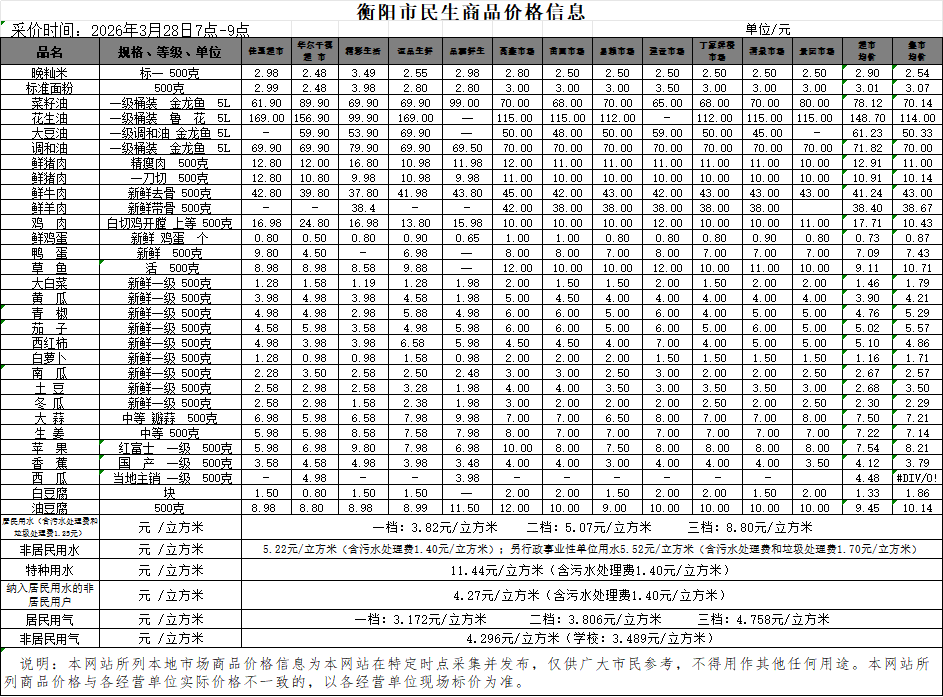【物价】 2026-3-28衡阳市民生价格信息
