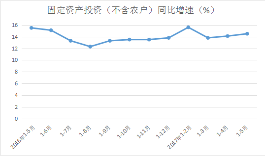 2017年1-5月份,全市固定资产投资(不含农户)855.54亿元,同比增长14.5%,增速比1-4月份提高0.4个百分点。
