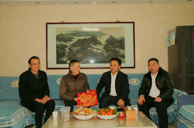 图为局党组书记、局长邱小兵(右二),局党组成员、副局长肖湘东(左一),局党组成员、副局长王威(右一)慰问退休老党员伍元明