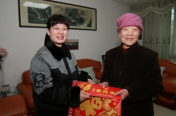 图为局党组成员、总审计师王振旭慰问退休老党员雷秀菊