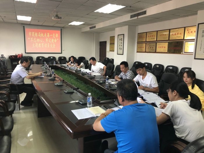 9月27日下午,市商粮局机关第一支部在局十楼会议室召开“不忘初心、牢记使命”主题教育动员大会,支部书记肖春红主持会议,第一支部全体党员参会。